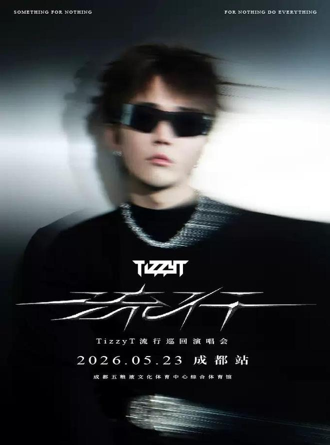 什么是「流行」?是耳机里循环的韵脚,是街头oversize的穿搭,还是那些刻进DNA的旋律?对于TizzyT而言,流行从不是转瞬即逝的浪潮,而是时空中留下的专属印记。时隔四年,TizzyT带着全新巡演主题「流行」重磅回归!2026年5月23日,成都五粮液文化体育中心综合体育馆,你的男孩TT将用最纯粹的说唱火力,点燃蓉城的夜晚。这一次,没有旁观者,只有参与者——准备好你的嗓子,全场大合唱即将上演!