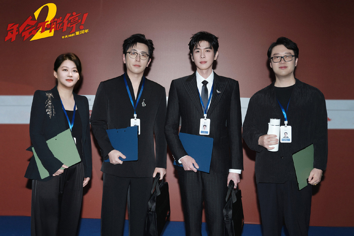 4月16日,职场喜剧电影《年会不能停2!》剧组亮相第十六届北京国际电影节,导演董润年,总制片人应萝佳,领衔主演张若昀、白客以干练造型踏上开幕红毯。他们均佩戴工牌,手持公文包、文件夹、保温杯等上班必备神器亮相,“班味”拉满,张若昀似把红毯走成通勤之路,白客更幽默表示,公文包里装着“重要的工作资料”,与影片聚焦当代打工人群体的故事相得益彰。