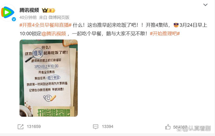 预热活动也同步发力,3月23日19:00,腾讯视频、腾讯综艺、微博综艺等官方账号同步发布预告海报,正式拉开新一季的预热序幕;3月24日10:00,还将开启全员早餐局直播,让观众提前解锁嘉宾互动名场面,进一步点燃期待值。