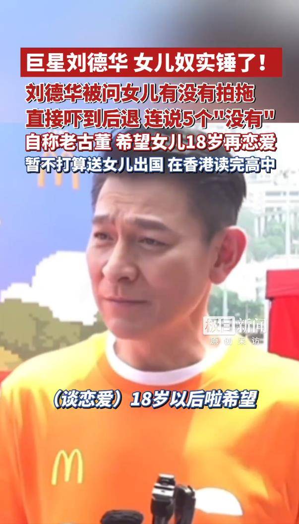 被问到能接受女儿多大年纪谈恋爱时,刘德华思考了几秒钟,带着点无奈又宠溺的笑容说:“18岁以后吧,希望喽,我是老古董来的。” 同时,他也明确表示,暂时没有让女儿出国读书的计划,先让女儿在香港读完高中再说。