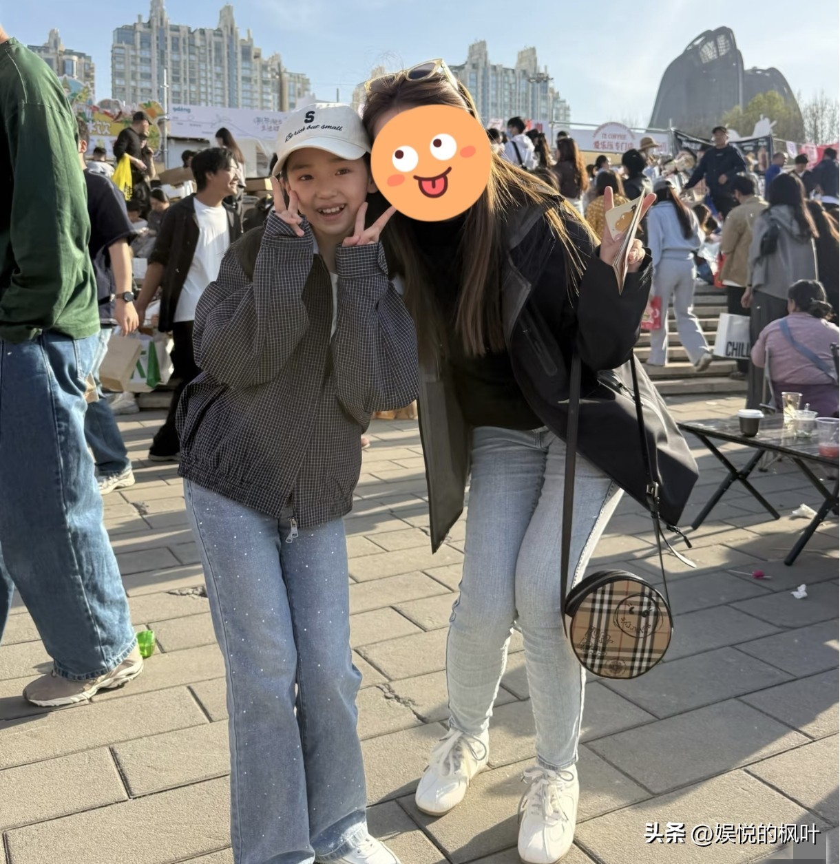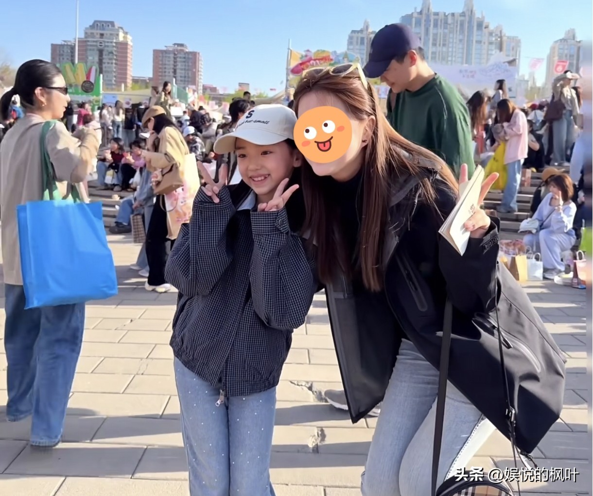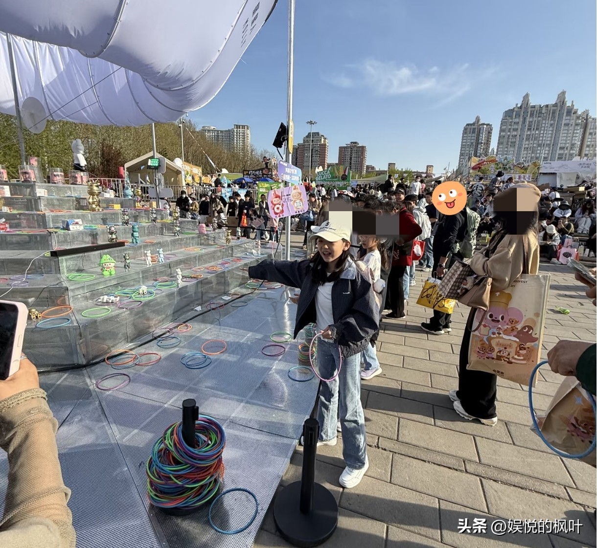 那天是4月11号,北京朝阳公园外头的面包节,人挺多,但不算挤。小酒窝跟两个穿蓝校服的同学一起逛,帽子有点歪,牙刚换完,笑起来露点缝,但不躲镜头。有人请她合影,她自己比耶,拍完还把套圈的竹圈顺手递给了后面排队的小孩,说“你来”。