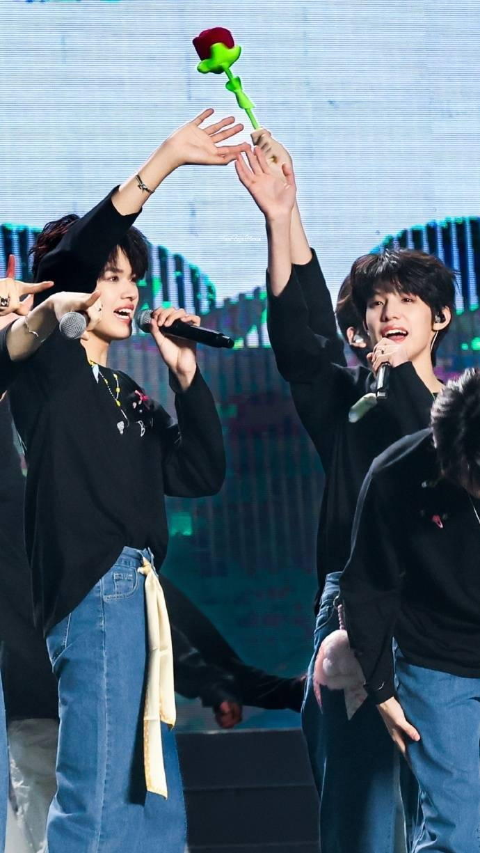 8月30日晚的海口五源河体育场,当舞台灯光突然聚焦在升降台上的两个身影时,全场近三万名粉丝的尖叫声几乎掀翻屋顶——TF家族TOP登陆少年组合一周年演唱会DAY2的隐藏曲目,最终以张泽禹与张极的双人舞台《过》震撼揭晓。这对从练习生时期就绑定成长的“音乐双子星”,用八年时间从蘑菇头小豆丁蜕变为舞台王者,这场合唱不仅是对粉丝的惊喜福利,更是两人默契与实力的最佳证明。 舞台上,张泽禹一身黑色皮质夹克搭配银链项链,张极则以白色衬衫外搭黑色马甲亮相,黑白撞色的造型既呼应着两人互补的性格,又暗合歌曲中“对立与融合”的主题。前奏响起时,张泽禹率先开口,清澈的少年音带着细腻的转音,而张极的低音炮随即接入,两个截然不同的声线在副歌部分交织成完美和声。尤其在高潮段落,两人同步完成的侧身wave动作引发全场尖叫,镜头扫过观众席,随处可见举着“极禹”灯牌的粉丝激动到落泪。