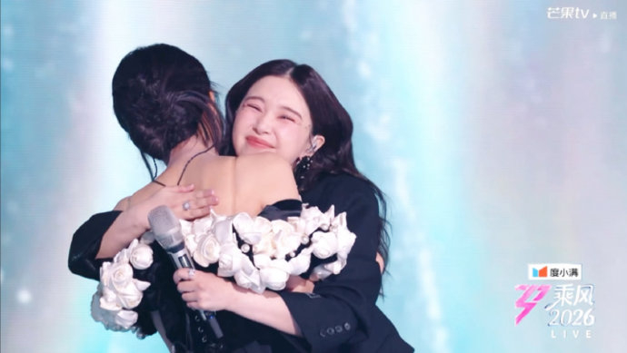 她以“不完美却动人”的舞台风格深入人心。演唱《遗憾》时,虽被指换气声明显、音准波动,却凭借沉浸式的情感渲染令观众潸然。这种“笨拙的真实”延续至人际互动:当孙怡落败痛哭,她第一时间穿越舞台蹲身安慰,掌心轻抚对方后背的动作毫无表演痕迹。更难得的是,她在选人环节放弃稳妥选择,冒险接纳实力被低估的成员,只因“想给努力者机会”。这份兼具共情柔肠与冒险精神的特质,被观众称为“人性光芒的具象化”。