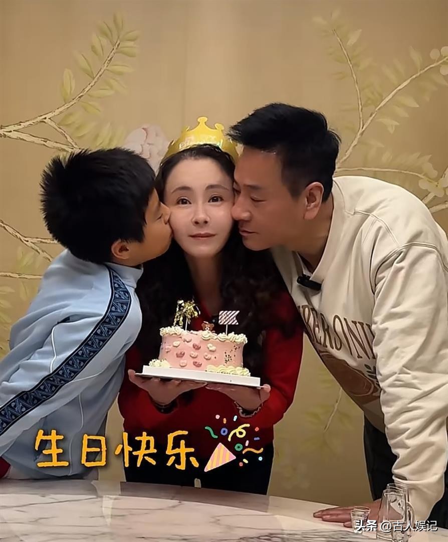 最近,一组杨若兮的全家福在网上疯传,46岁的她穿着家居服,和导演丈夫连奕名、儿子大福挤在自家厨房里,对着一个歪歪扭扭的粉色爱心蛋糕笑得开怀。