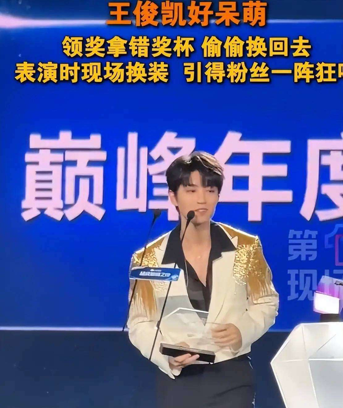 热搜上关于王俊凯领奖拿错奖杯的话题,背后藏着一段温馨且真实的舞台插曲。3月28日,在QQ音乐·超级巅峰之夜的颁奖典礼上,当红艺人王俊凯登台领取年度歌手奖项时,发生了一件小小的乌龙。舞台上,金属奖杯与反光的Logo牌并排放置,由于外观相似,王俊凯误将印有QQ音乐巅峰之夜字样的Logo牌当作奖杯拿了起来,准备发表获奖感言。就在他举起奖杯那一刻,身旁的工作人员轻声提醒了他一声。他瞬间露出了抿嘴的笑容,微微羞涩地换回了正确的奖杯,而这一切都被台下的粉丝镜头清晰记录下来。网友纷纷调侃:就像是被抓包的小朋友一样!