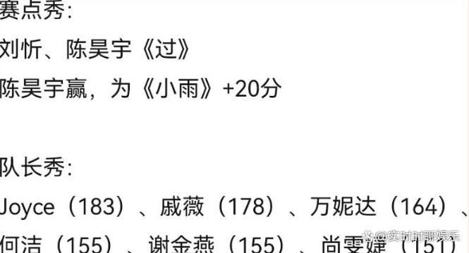 在三公的赛点秀环节,刘忻和陈昊宇将联手演绎林俊杰和王嘉尔的经典歌曲《过》。最终,陈昊宇战胜了人气颇高的刘忻,为团队赢得了20分的额外加分。