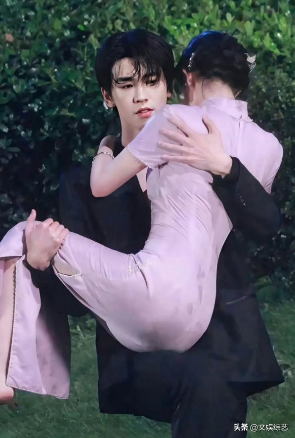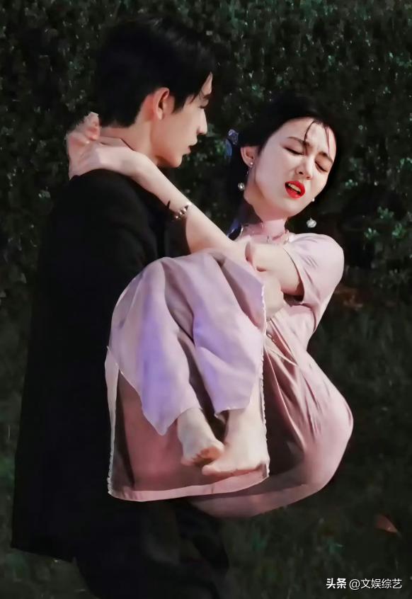 在两人剧透中的画面,王楚然被张凌赫以公主抱的方式抱起,她的身体形态和状态、以及转折的动作构成90度的姿态,使得粉色紧身旗袍紧贴王楚然的身体。