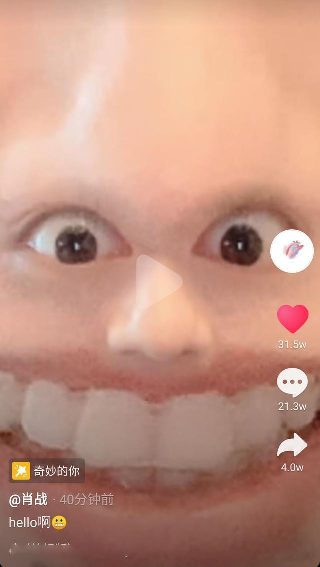 谁能想到肖战的这条视频是使用特效了的呢?正当大家沉浸在肖战更新视频的喜悦里时,这个时候屏幕上帅气的肖战“不见”了,取而代之的两只大眼睛、有着两个大大鼻孔的鼻子、一个嘴巴、两排洁白的牙齿。