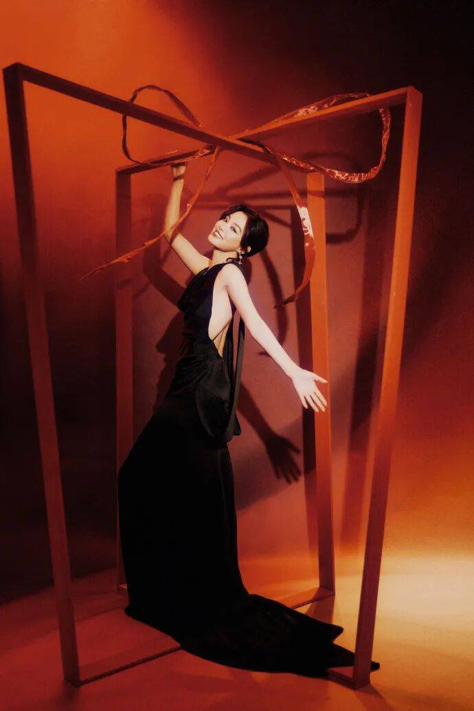 辛芷蕾穿着无袖的黑色长裙,她俏脸成熟妩媚,侧身微笑很可人,露出白皙的手臂,曼妙的身材曲线,还是很性感撩人的!