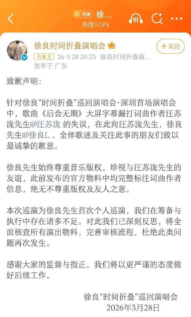 3月27日,深圳湾体育馆,灯光璀璨,徐良站在舞台上,深情地唱着那首曾让无数人单曲循环的《后会无期》。全场的歌迷情不自禁地与他一同合唱,氛围热烈而温馨。但就在这激动人心的时刻,一位眼尖的粉丝突然发现——大屏幕上的歌词署名,竟然只剩下无期是缘无故地消失了。 更为戏剧性的是,几乎在同一时刻,汪苏泷正站在新加坡的舞台上,深情地演唱着这首歌,他的大屏幕上清晰地显示着两个人的名字。