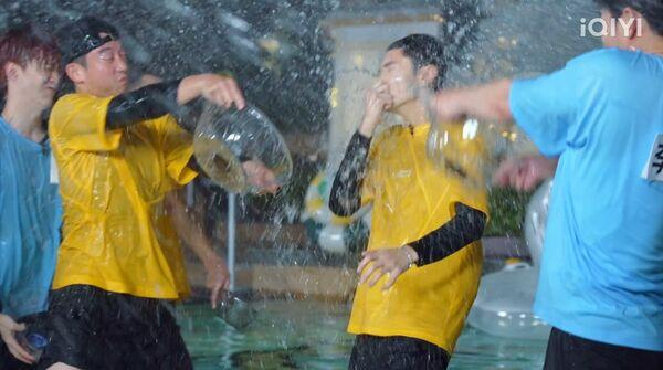 在进行泼水处罚前,陈哲远被提醒假发纱边有点松开,被问要不要再撕开一点或是先摘下「怕它扯着你」,他则坚持戴着接受处罚,笑说:「不用摘!就看它质量过不过得了关。」结果真的没过关,假发瞬间飞脱、掉进泳池中,他一度满脸错愕。