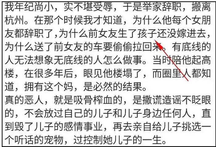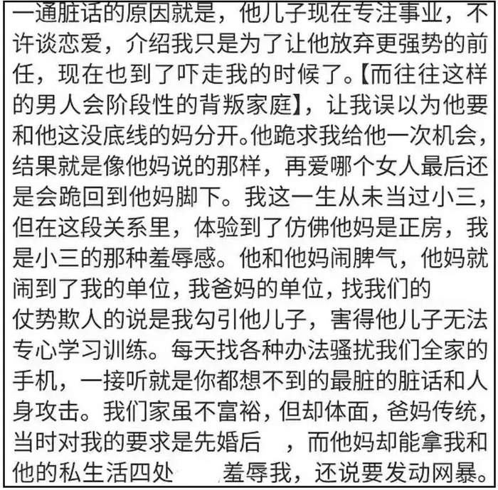 孙杨妈妈想要孙杨和女友分手,就去女方单位大闹,女方被迫辞职搬家,多年后还是气不过,发了长文控诉孙杨母子,还曝出了孙杨有私生子的事。