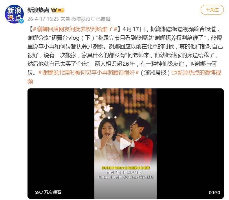 据4月17日报道,谢娜在分享“初舞台vlog(下)”时,对一则“谢娜抚养权判给谁了”的热搜做出了回应。她笑称看到这个话题,说李小冉和何炅都“抚养”过自己,并讲述了一段暖心的过往。