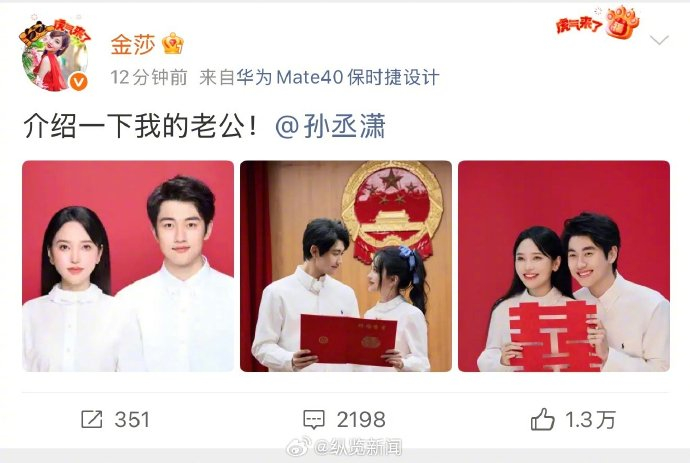 2026年4月9日,45岁的歌手金莎与小19岁的男友孙丞潇同步晒出结婚登记照,以"介绍一下我的老公/老婆"甜蜜官宣领证,为这段曾饱受争议的姐弟恋画上圆满句号。