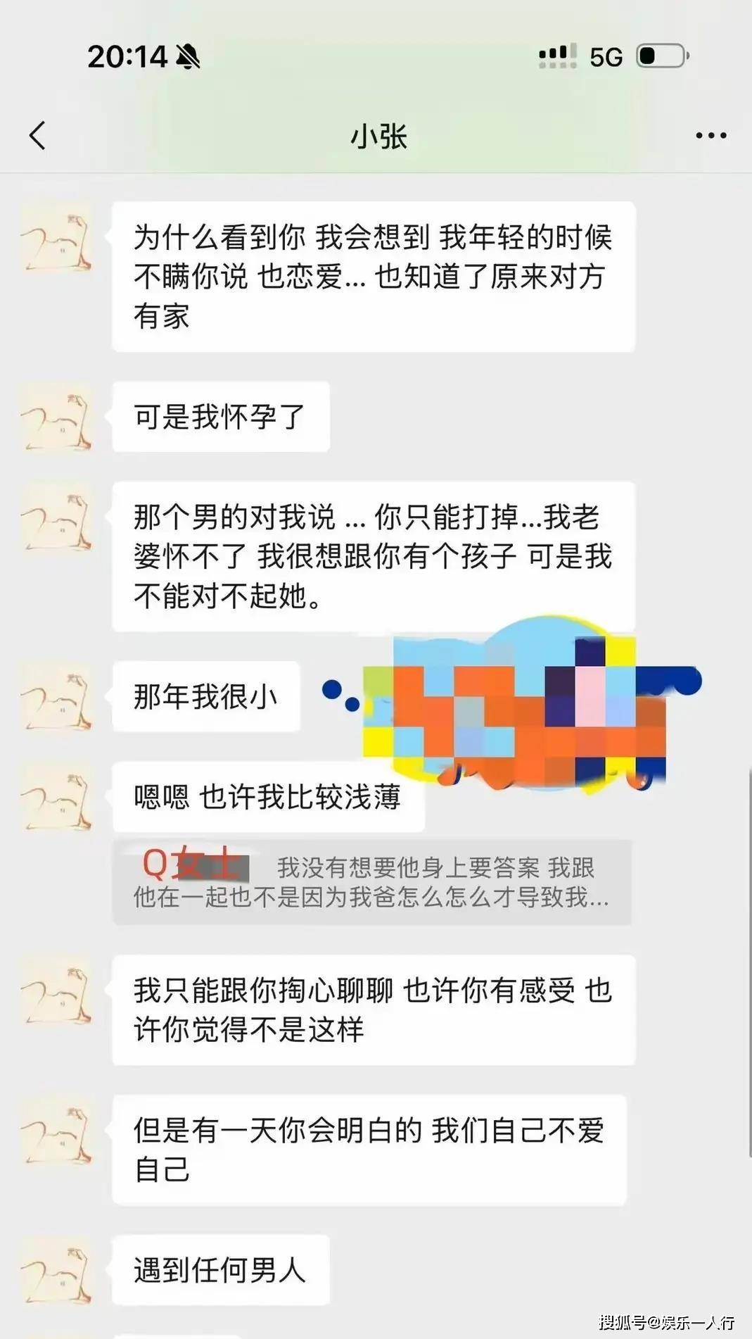 宋宁峰的妻子是张婉婷。2026年3月15日,在出轨录音曝光前,张婉婷私下联系了Q女士。她没骂人,反而掏心掏肺讲了自己的往事。她说,自己在和宋宁峰结婚前,大概20岁左右,也曾“不知情”地爱上一个有家庭的男人。她怀了对方的孩子,但那个男人要求她打掉。理由是不能对不起妻子,但紧接着又卖弄深情,说自己的妻子不能生孩子,想和她生一个。