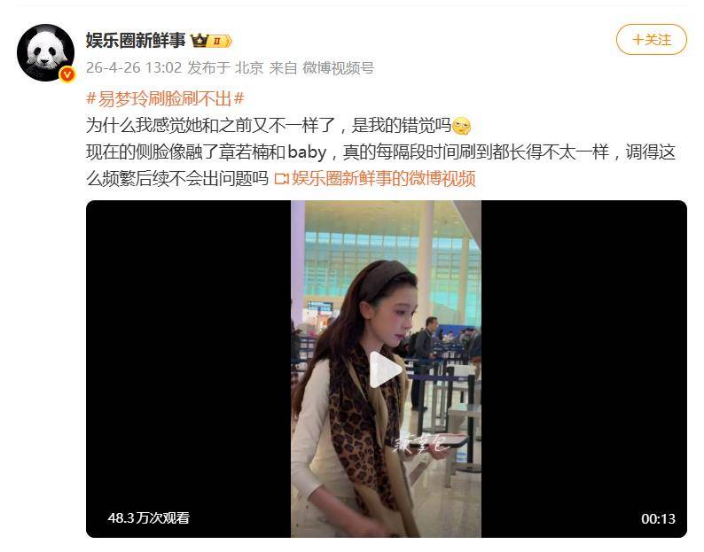 事情是这样的。据4月26日报道,易梦玲一组最新近照在网络上流出,瞬间引爆了评论区。照片里的她,侧脸线条流畅得仿佛开了“一键磨皮”特效,但网友们却越看越不对劲——这跟记忆里那个靠独特“纯欲风”杀出重围的易梦玲,怎么好像“判若两人”了?
