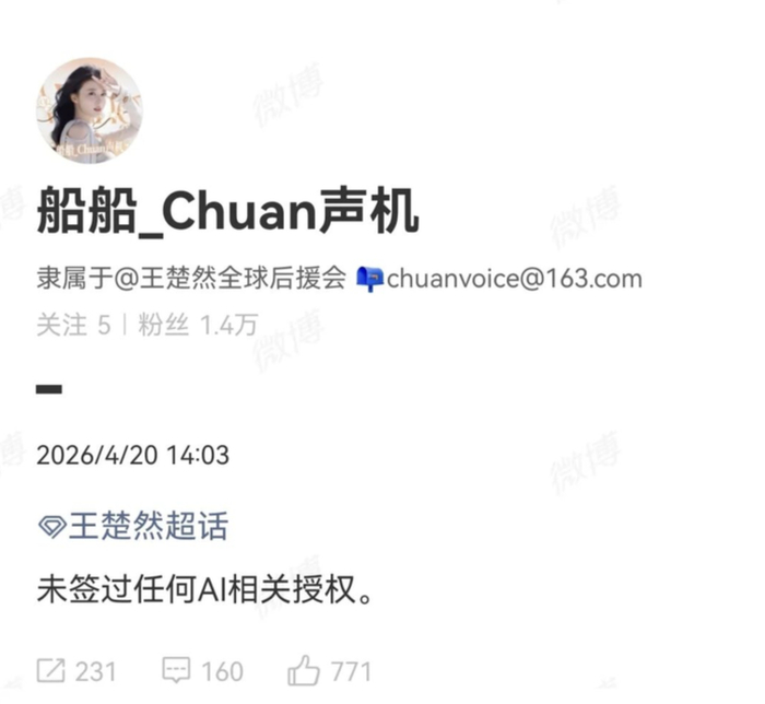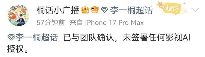 此外,李一桐、王楚然等艺人的粉丝后援会也与团队确认,未签过任何AI相关授权。