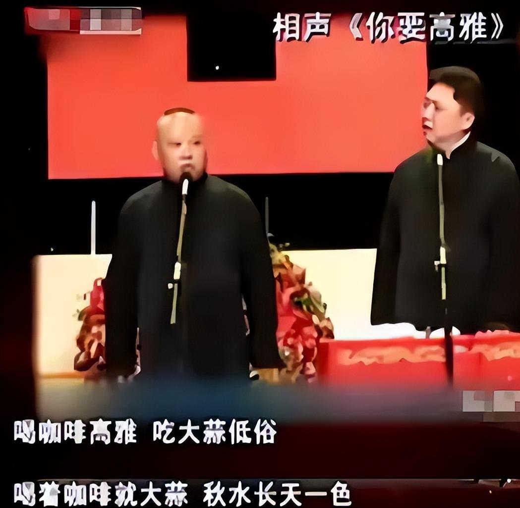 这话传到郭德纲耳朵里,郭德纲没直接骂回去,而是在相声里慢悠悠地说了句,喝着咖啡就大蒜,秋水共长天一色。