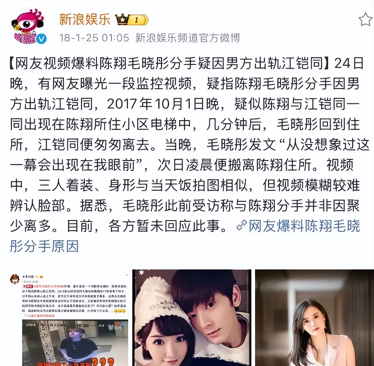 问题的本质在这里:这整件事,从头到尾没有任何一条实质性证据,指向毛晓彤和陈晓有私下的恋情。