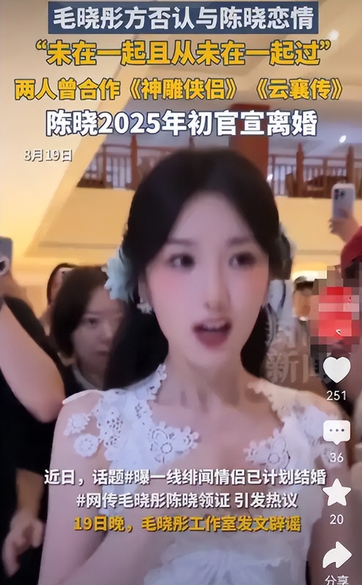 毛晓彤工作室也在第一时间跟进,直接否认恋情,声明强调她目前单身,从未与陈晓在一起。