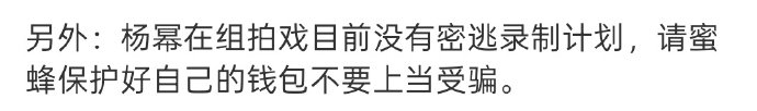 杨幂团队于2026年4月27日通过微博等平台发布声明,强调她不会参与《密室大逃脱8》的录制。这一消息由娱乐鲜报、杨幂工作室对接账号等认证渠道多次确认,并附带话题#杨幂没有密逃录制计划#和#杨幂方否认录制密逃#,以澄清网络传言。部分账号如音乐幕后、鲜娱热播剧等还呼吁粉丝理性看待不实爆料,避免被误导。