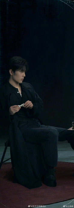 纯黑风衣与利落剪裁强化其"终焉执棋人"的身份。手持棋子的定格画面中,肖战眼神如刃,将原著中"以谎言为刃破局"的博弈智慧具象为肢体语言,彰显掌控全局的压迫力。