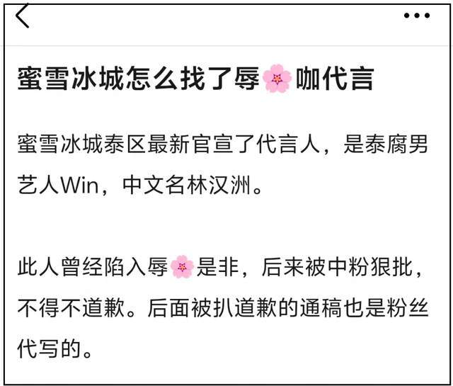 蜜雪冰城竟然卷入了代言人争议!难不成是雪王塌房了吗?围观了网友讨论才知道,蜜雪冰城和一位泰国真人明星合作了,谁想到这位中文名为林汉洲的泰星很快就被扒出了辱华黑历史。