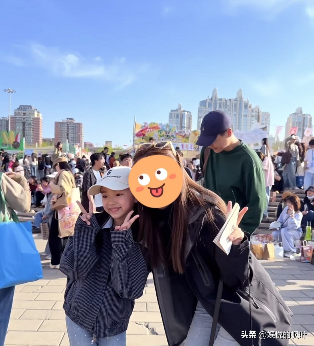 那天是4月11号,北京朝阳公园外头的面包节,人挺多,但不算挤。小酒窝跟两个穿蓝校服的同学一起逛,帽子有点歪,牙刚换完,笑起来露点缝,但不躲镜头。有人请她合影,她自己比耶,拍完还把套圈的竹圈顺手递给了后面排队的小孩,说“你来”。