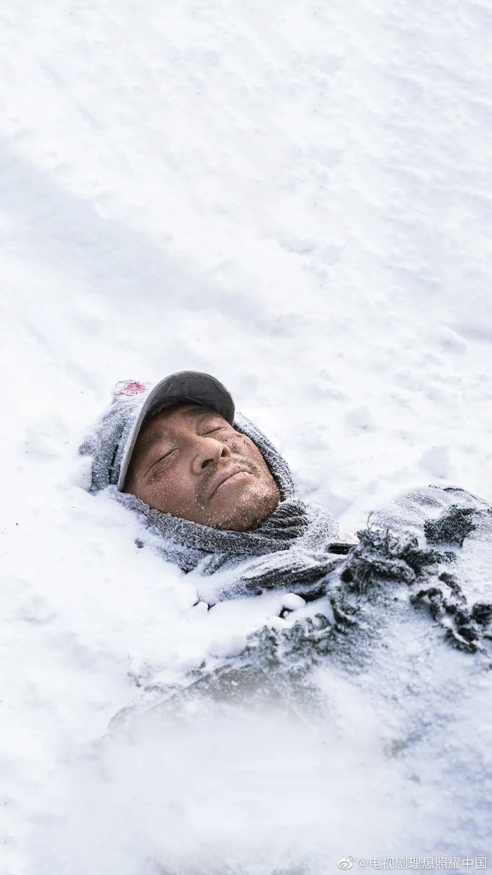 实拍时,王劲松躺在了零下30摄氏度实景拍摄的雪地里,工作人员用筛子筛雪,慢慢将他覆盖上,“直到最后全部掩埋,白茫茫一片看不到这个人,然后再把我给拉出来,就这样埋的、拍的。”