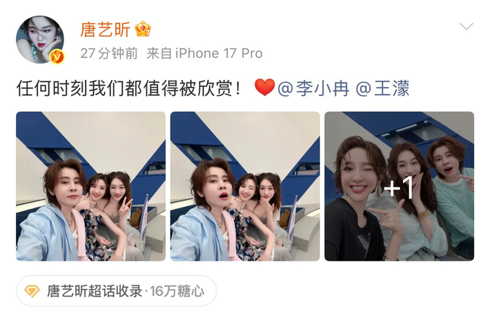 ,1. **"这三个人颜值和气质都在线到让我怀疑人生!唐艺昕的笑容像冬日的暖阳,李小冉的气质像是仙女从天上降下来,王濛的存在感太强了!"** , - 昵称:"暖心大师",2. **"三人同框真的太美了!唐艺昕的颜值直接拉满,李小冉的气质让人怀疑自己是不是女版神仙,王濛的存在感简直太强了!"** , - 昵称:"天使派",3. **"这三个人颜值和...