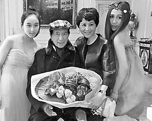 何超欣(左一)、赌王及何超盈(右一)齐为四太庆祝生日,场面温馨。