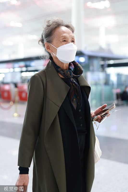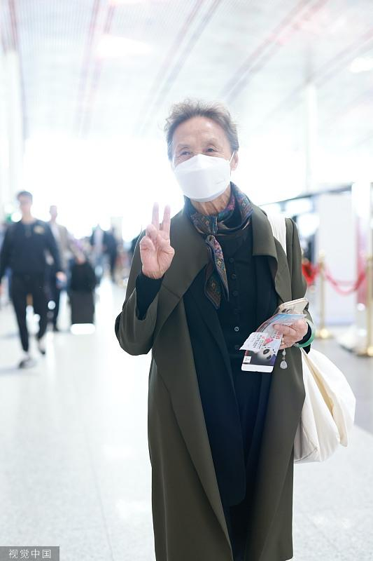 新浪娱乐讯 2023年4月25日,北京,85岁老戏骨吴彦姝现身首都机场。(视觉中国/图)
