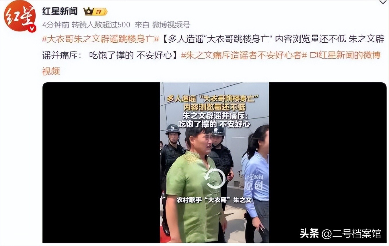 只是在封面上加上大写加粗的红色字体“大衣哥跳楼身亡”,就轻轻松松实现了流量变现,造谣真是成本太低了。