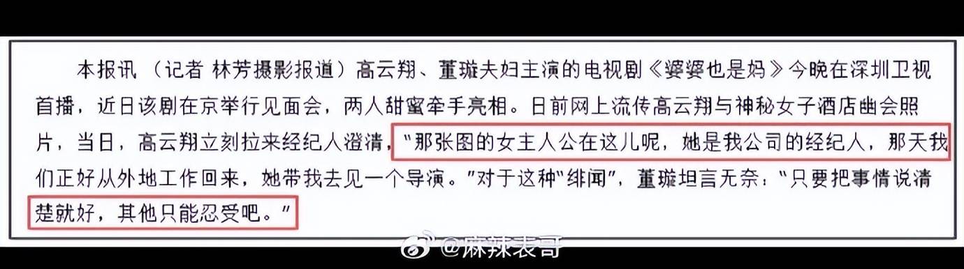 更“实锤”的线索被迅速翻出。就在2012年5月,确有媒体拍到张婉婷与高云翔一同出入酒店,画面中不乏挽胳膊、摸脸等超越普通同事关系的亲密接触。绯闻发酵后,高云翔的处理方式是携妻子董璇与张婉婷三人共同出面澄清,称张只是“刚来公司的工作人员”。而当时董璇面对媒体的表态,如今回味起来颇显无奈,她只说了一句:“只能接受。”