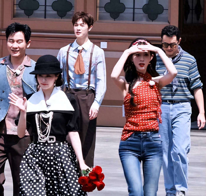 陈哲远在路透图中的造型同样极具年代感,与李昀锐的清爽校园风不同,他打着领结、戴着墨镜,霸总气场十足,宽肩窄腰的身材比例让画面充满苏感。原本只是综艺录制,却呈现出偶像剧的质感,不得不说,现在综艺造型之卷,真的是让观众大饱眼福——越卷越精彩,越看越上瘾。