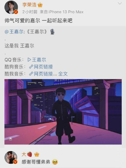 李荣浩则是《偶像练习生》的音乐导师,他也为王嘉尔打call了。王琳凯则是《偶像练习生》的学员,他为王嘉尔打call了。