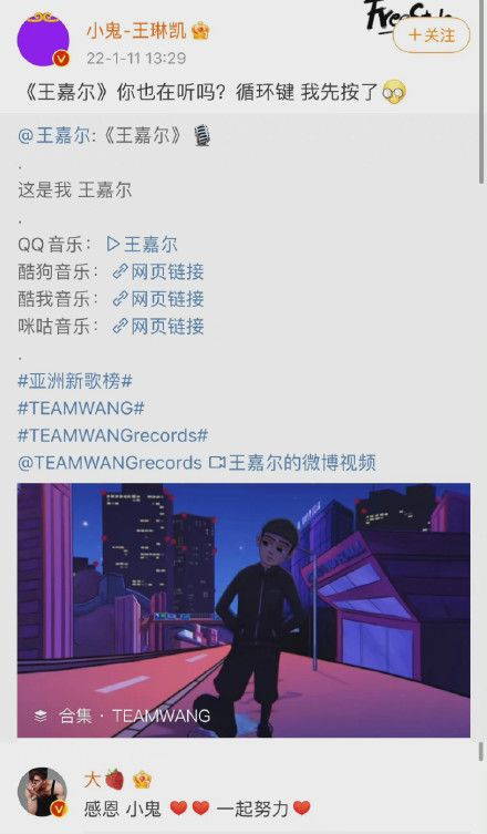 还有很多明星为王嘉尔新歌打call,我就不一一说了,比如谭维维、袁娅维、宋威龙、INTO1的刘彰、万妮达、飞儿乐团、硬糖少女303的希林娜依·高、李铢衔、徐明浩、SKY的郑人予等。