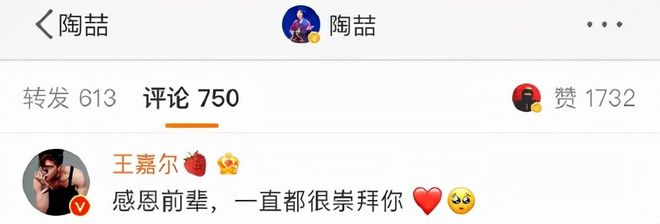 陶喆也为王嘉尔打call了,王嘉尔留言:“感恩前辈,一直都很崇拜你。”王嘉尔对每一个帮他打call的明星都回复了,但是“崇拜陶喆”这样的话,尽量还是少说,或者说清楚一点:崇拜陶喆的音乐才华,而不是全部,毕竟陶喆曾经出过轨。
