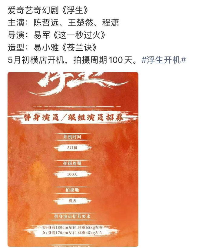 #陈哲远王楚然程潇浮生开机##浮生题材#这部要开机了,好奇是什么样的奇幻剧