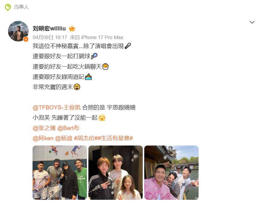 4月9日,刘畊宏在微博上分享了一组周末聚会照,直接让全网炸开了锅。照片里不仅有“逆龄男神”王俊凯,更引爆了一场关于八年成长与“神仙售后”的集体怀旧。