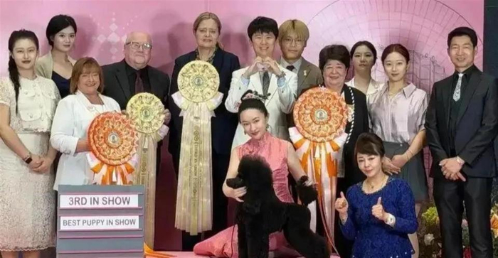 这位44岁的女演员亲自担任牵犬师,在赛场上指挥爱犬完成各项展示动作。 为期三天的比赛中,“霍蜜蜡”表现惊艳,累计斩获幼犬组全场总冠军第一名3次、第二名2次。 更厉害的是,这只11个月大的幼犬在组别赛中八次战胜日本排名第一的同犬种选手,刷新了中国选手在该赛事的历史最佳成绩。