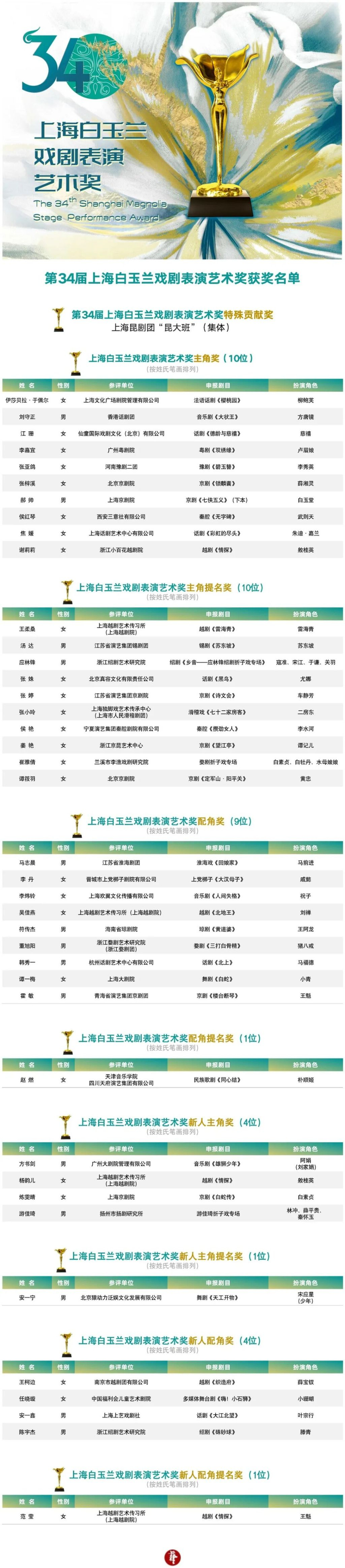 据悉,本届白玉兰戏剧奖颁奖系列活动还将联动首届中国戏剧梅花奖国际化优秀剧目展演,打造“北梅南兰”双奖辉映的文化盛事,共同助力上海国际文化大都市建设。