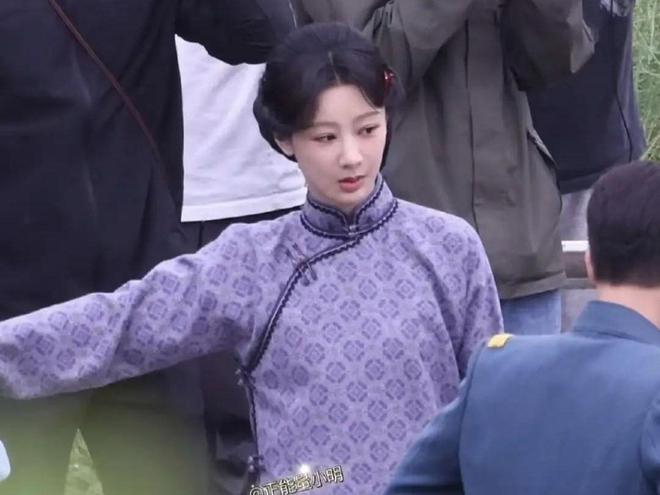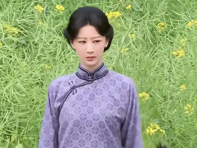 她一袭暗紫色改良旗袍,贴合身形衬得身姿窈窕,灰调紫衬得皮肤透亮,完全是民国大小姐的温婉范儿。