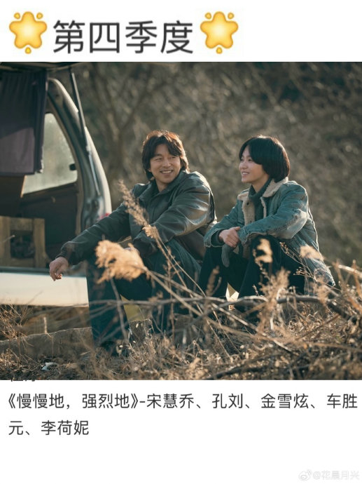 行业背书与观众呼声:70名韩国影视从业者票选该剧为“2026年最期待作品”榜首;中国微博话题#宋慧乔孔刘慢慢地强烈地预告#单日阅读量破亿,网友疾呼“等不及第四季度”。