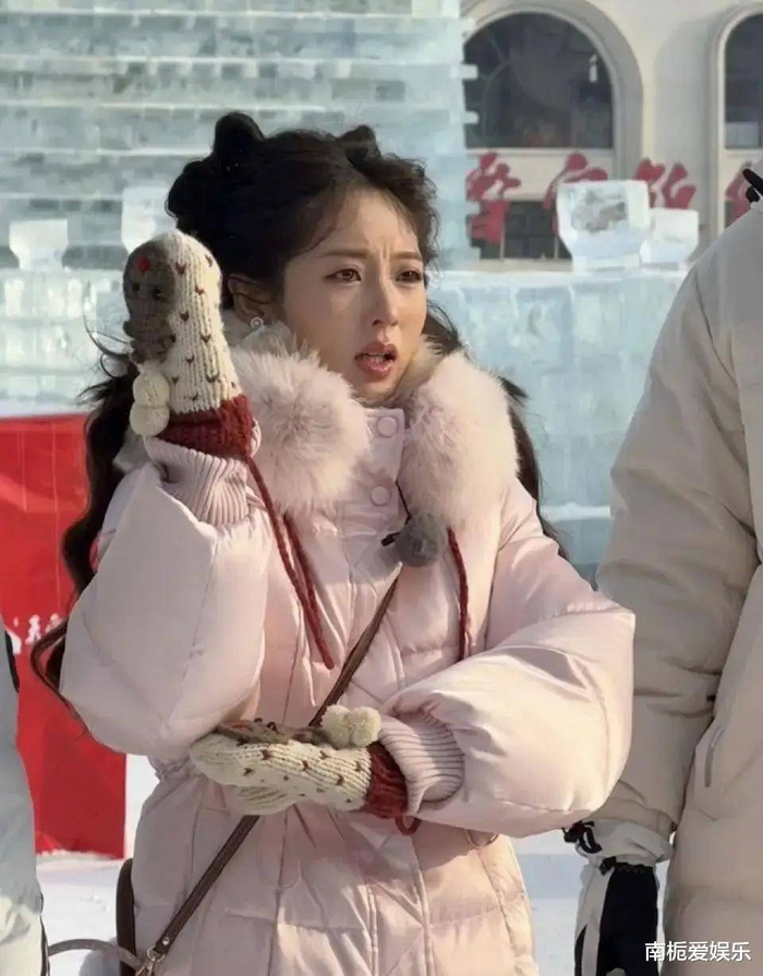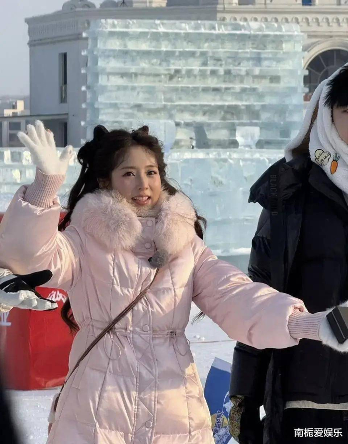 在长春冰雪新天地那如梦似幻的冰雕前,邢菲的造型与周围的雪景巧妙融合。她身着厚实蓬松的粉色羽绒服,如同一团温暖的棉花糖,漂浮在寒冷的冰雪世界中。她身后是晶莹剔透的冰雕建筑,冷峻的冰雪与她温暖的外形形成鲜明的对比,仿佛是童话故事中的雪地精灵。拍摄画面中,她与镜头互动时挥手微笑,那双辫子随着动作轻盈晃动,整个人散发出一种如动画角色般的梦幻感。粉丝纷纷在社交平台上留言:这简直是冬日甜心暴击!粉色羽绒服、雪地、再加上小猫编发,直戳萌点!这一视觉呈现,无论是色调还是气氛,都散发着浓浓的治愈感,让人一看就感到无比温暖。