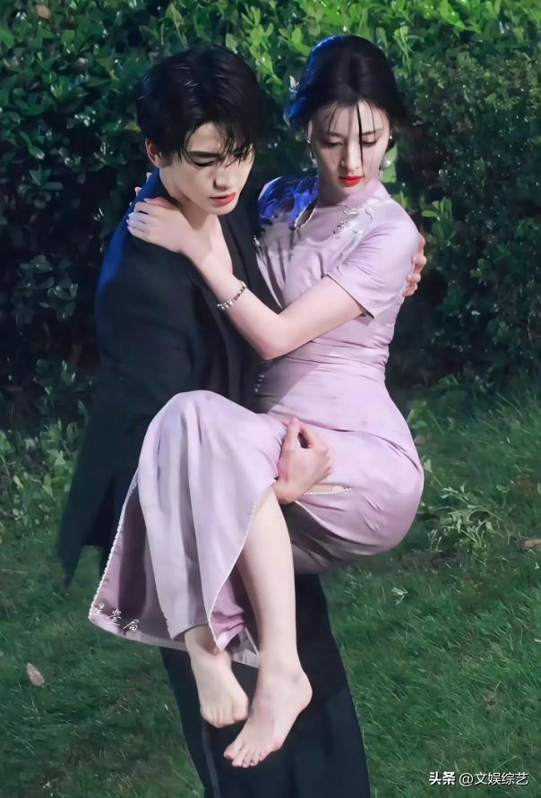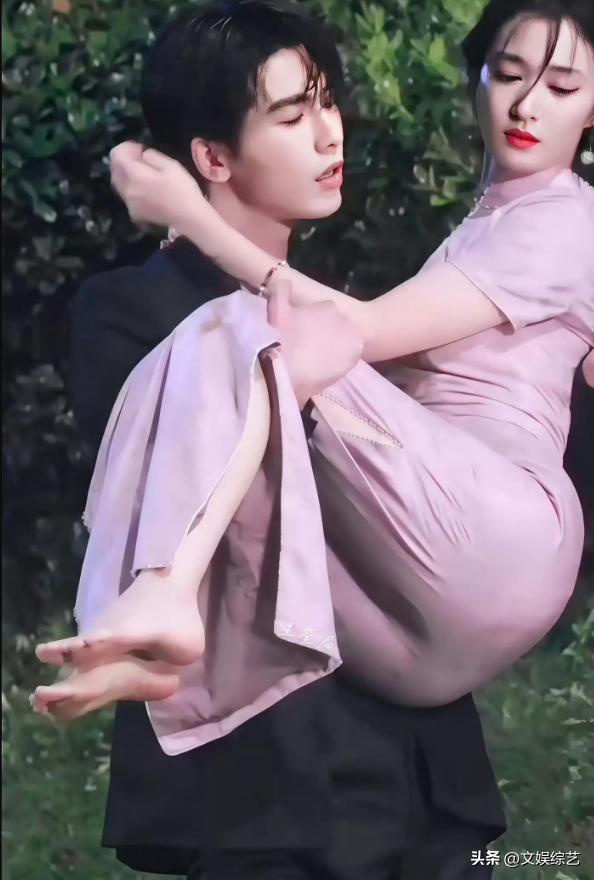 在两人剧透中的画面,王楚然被张凌赫以公主抱的方式抱起,她的身体形态和状态、以及转折的动作构成90度的姿态,使得粉色紧身旗袍紧贴王楚然的身体。