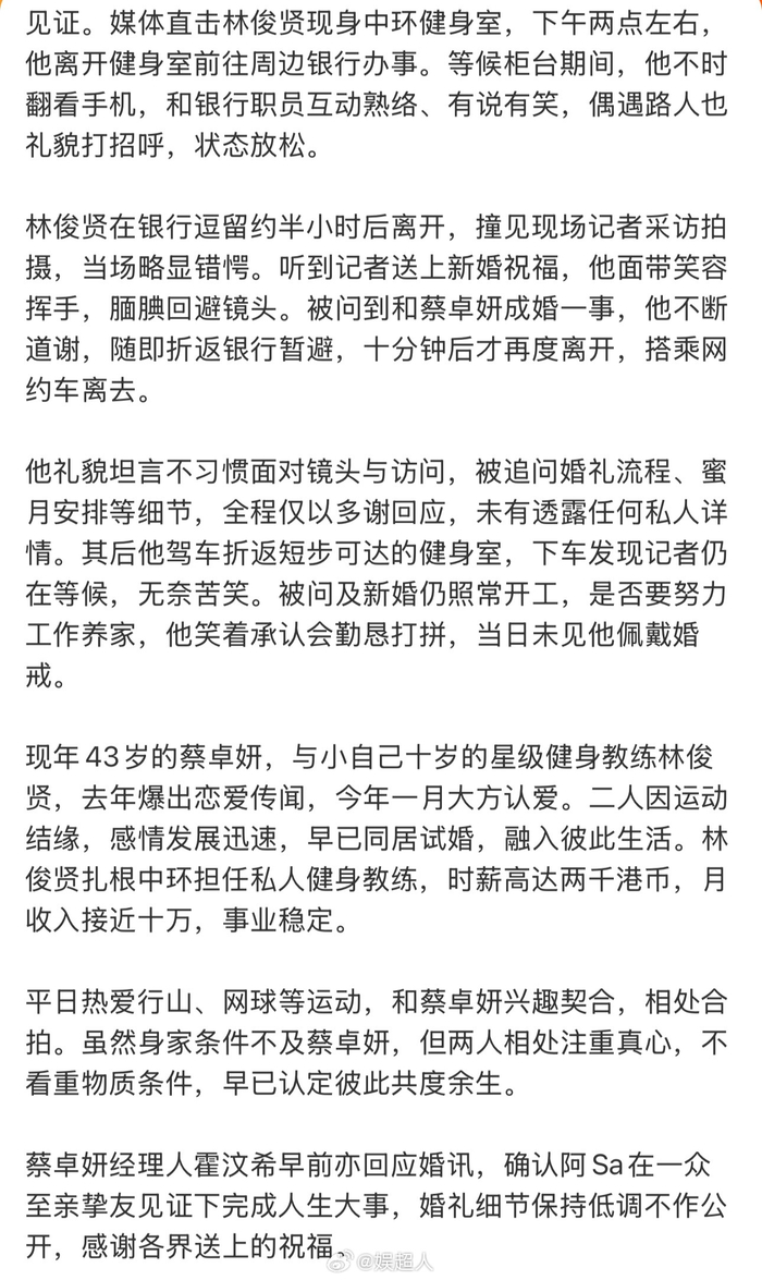 #阿Sa林俊贤已举办婚礼##蔡卓妍林俊贤已举办婚礼#