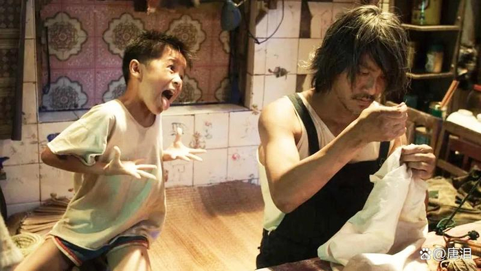 返身看看周星驰的来路,撇开其无厘头戏路的表象,自《赌圣》开始,在他的任何一部作品中,无论角色还是表演,都有一种“童真”在内,且并不让观众感觉违和,这种触感,在《功夫》时达到巅峰。