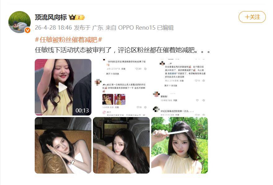 事情起因是任敏在线下宣传活动中被拍到“脸部圆润”“肩臂饱满”,状态引发关注。部分粉丝一看就坐不住了,直接涌进评论区,建议她短期内减重3到5斤,理由也很“专业”:她接下来有好几部待播古装剧,古装镜头本来就容易放大面部饱满特征,这个状态上镜,效果怕是要打折扣。