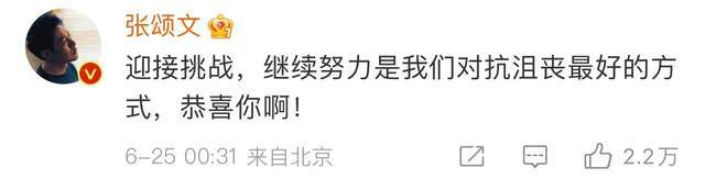 张颂文也发文祝贺:迎接挑战,继续努力是我们对抗沮丧最好的方式,恭喜你啊!